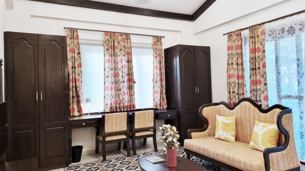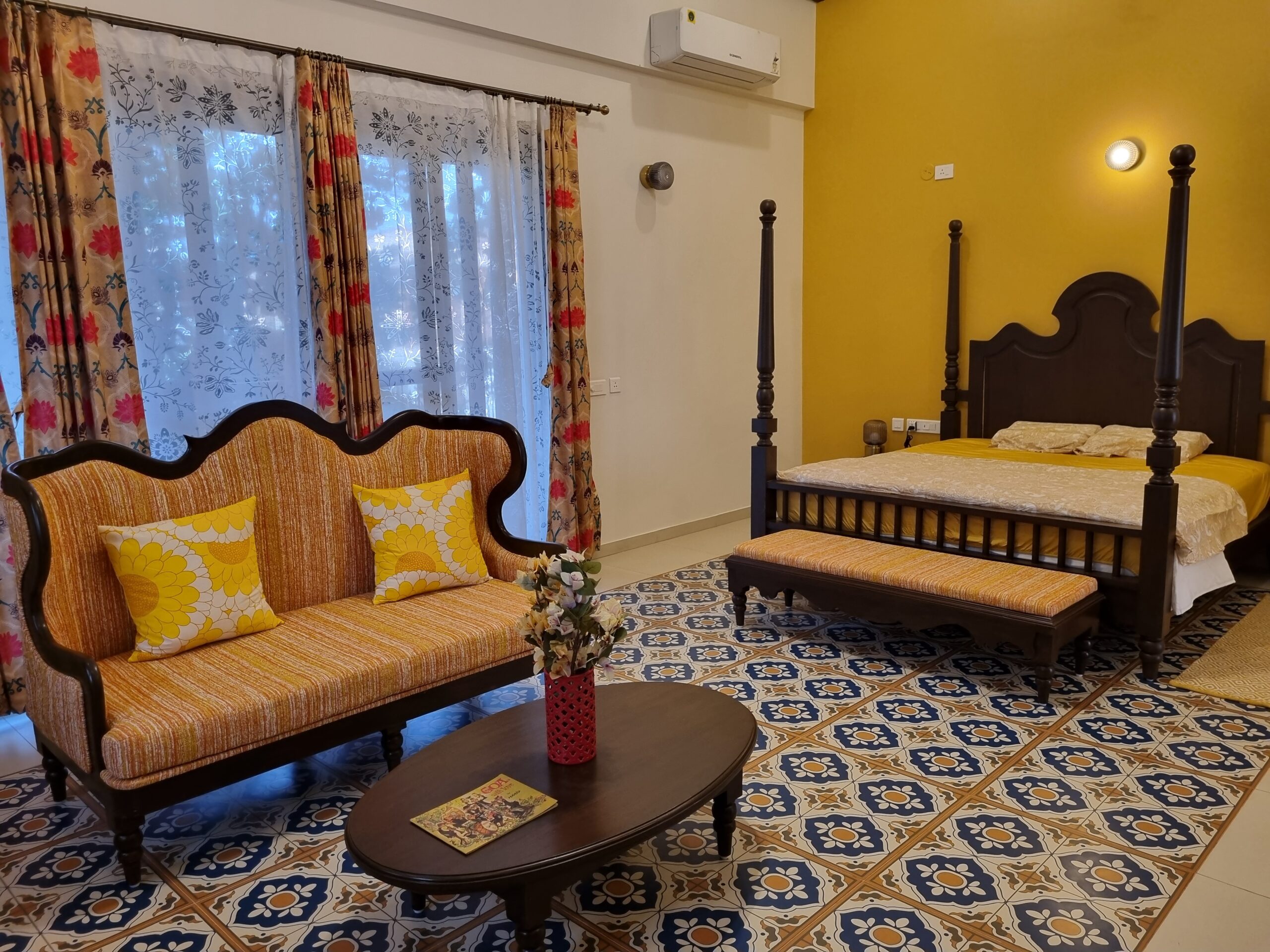 Living, sleeping and open spaces are designed with comfort and luxury in mind with contemporary Goan-Portuguese theme with clean lines and bright colors.