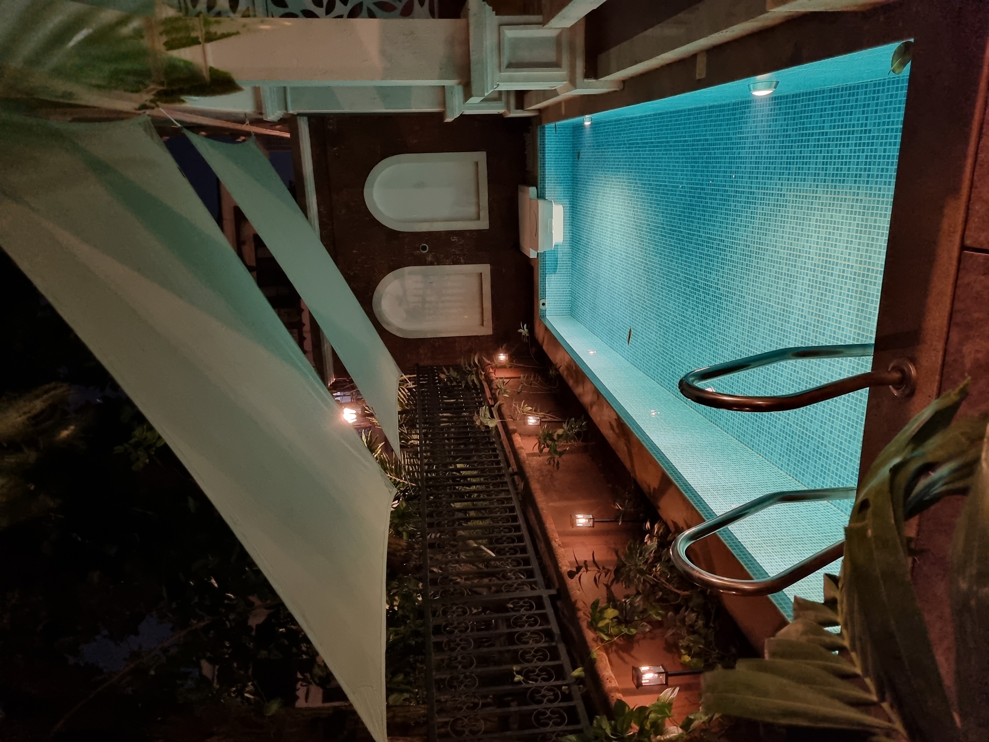 The open spaces in the villa are many, you can be one with nature amidst trees or host a sun downer party for friends or enjoy a plunge in your private pool on a hot afternoon. The plunge pool and patio space with a Goan balcao seating space offers you the option to laze around under the afternoon sun. The dining pavilion is perfect for a cup of morning coffee or breakfast. The balconies in the master bedroom are shaded by large trees and is the perfect space to read a book. The sun deck offers great sunsets overlooking the creek and the salt pans beyond. The large terrace on the top floor is the perfect space for an evening with friends.